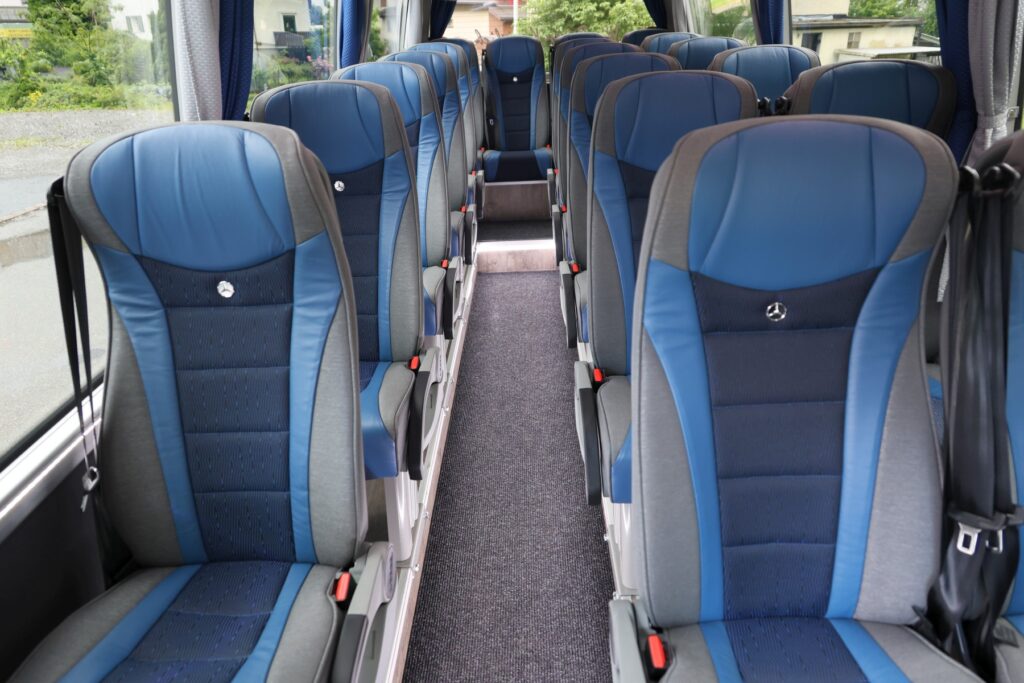 Die bequemen Reisebusse sind mit allem Komfort für ihre Touren ausgestattet. Klima, DVD, TV, Kühlschrank, 230V Steckdosen (beim Grande Sprinter sogar an jedem Sitzplatz). Die beiden Setra verfügen auch über eine Toilette.